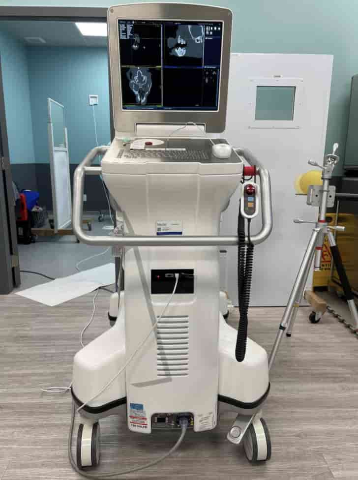 The CT scan only takes approximately 20 seconds after the machine is set up around the patient and this allows imaging to be done right at the time of the procedure and does not require a separate appointment.