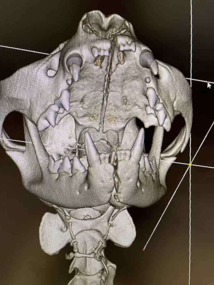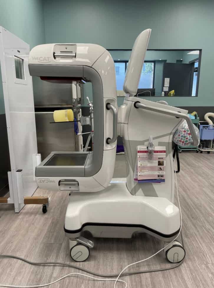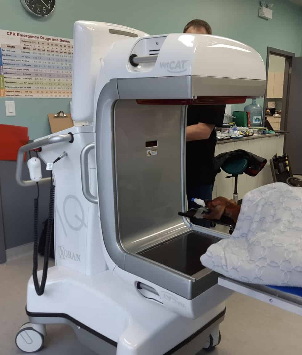 Technology has advanced to the point where dental practices (human and veterinary) have been able to bring cone beam computed tomography (CBCT) patient side. Cone beam computed tomography is similar to what you may recognize as a CT scan in the hospital but slightly different technology and also on a much smaller scale for the size of the machine and radiation exposure compared to a conventional CT machine.